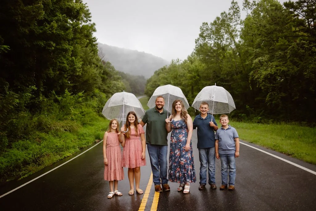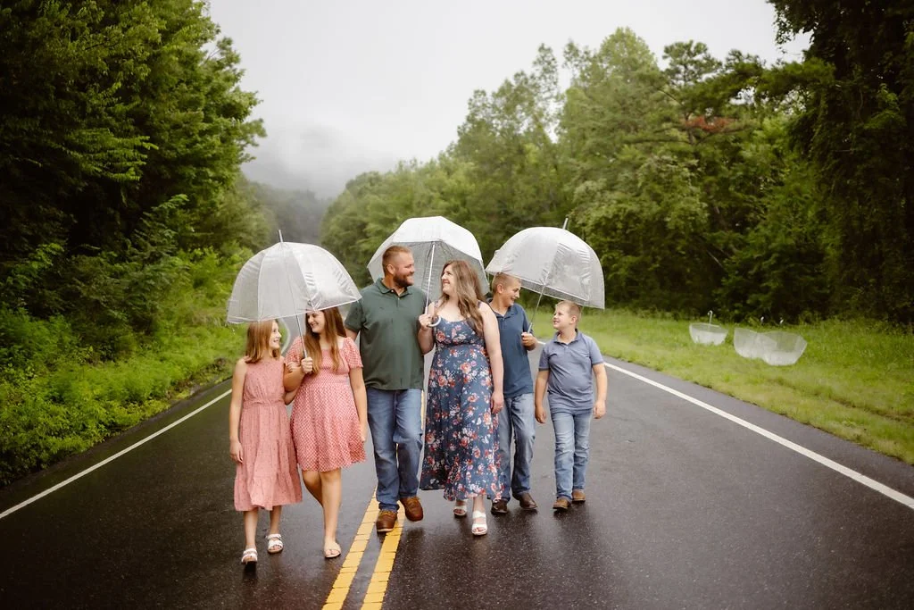 If you’re planning family photos in the rain, don’t let a wet forecast keep you from capturing memories. In the Smoky Mountains, weather is always a little unpredictable, and sometimes those moody skies and raindrops create the most unforgettable images. With the right mindset and a little preparation, your rainy-day session can be full of laughter, adventure, and genuine connection!