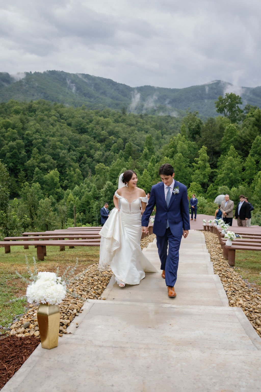 As you’re leaving your ceremony and transitioning to party mode, stop half way down the aisle and kiss again! Or, take a pause to look at each other and your guests. Gatlinburg wedding photographers love to grab a shot with all of your friends and family grinning behind you. The giddiness of being a newly wed is as fresh as it can get! So let’s capture the moment!