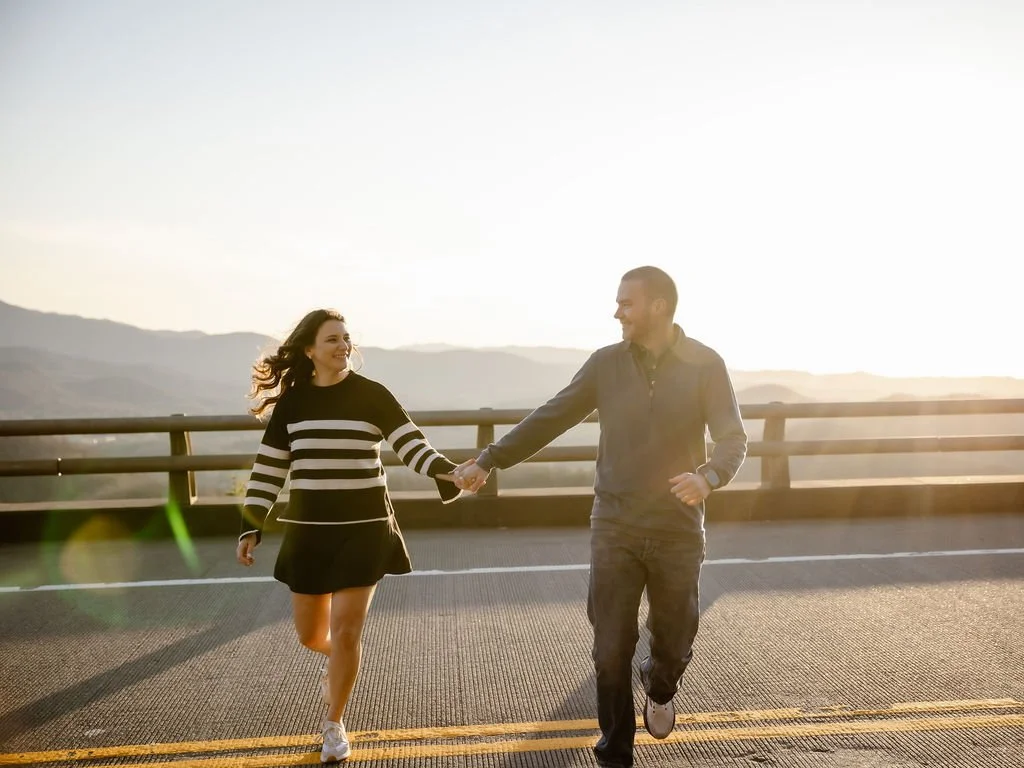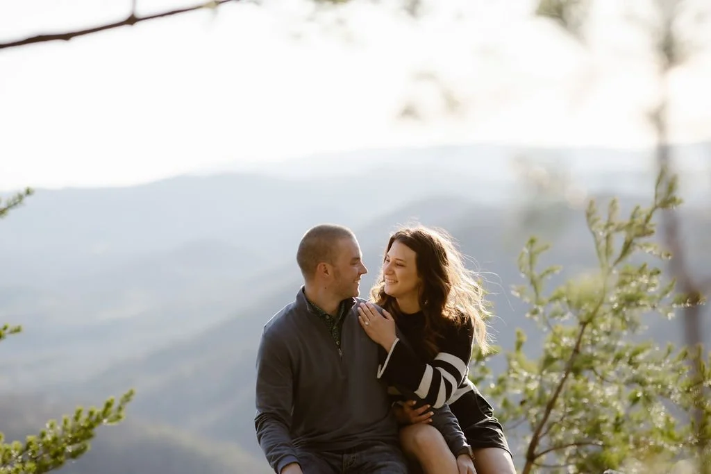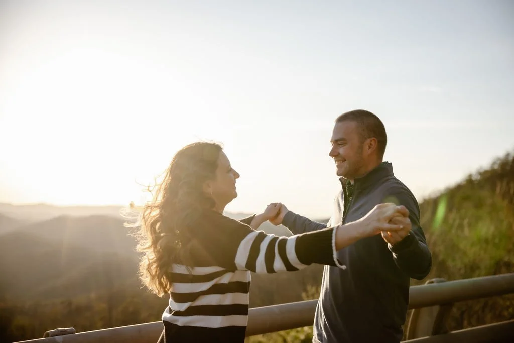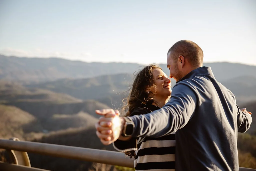 Some of the most romantic proposals I’ve photographed took place in spots that combine dramatic views with just the right amount of privacy. Cliff Tops at Mt. LeConte is a top choice for couples who want a sweeping view at sunset. It's a bit of a hike, but the payoff is huge. For those wanting something a little easier to reach, Newfound Gap offers incredible mountain vistas and a sense of being on top of the world. If waterfalls are more your style, the short walk to Cataract Falls makes for a peaceful, shaded setting that’s especially beautiful in spring or after a rain. However, my favorite and most popular spot is the Foothills Parkway! You pull right off the road and get amazing views of the valley and mountains. It’s easy to get to and probably the most beautiful location in the park!